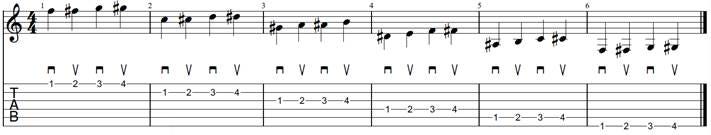Alternate picking is a picking technique where you alternate between down and up strokes. This method can help develop the right-hand technique to be more consistent and can help build speed, precision, and control. These exercises will help develop your right-hand technique as well as the coordination between your right and left hand.