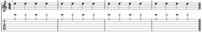 Exercise 1: Open strings. This example is on the open E, but practice alternate picking each open string.