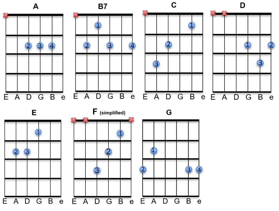 Video 3: “Whole World” exercise on E and B7.