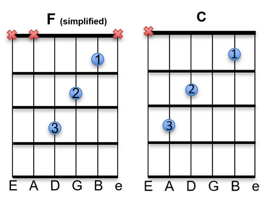 Once you’ve got each chord down on it’s own try transitioning between the two. Expect this to be slow at the start but realize that each repetition increases muscle memory and soon you will be placing each chord with ease.